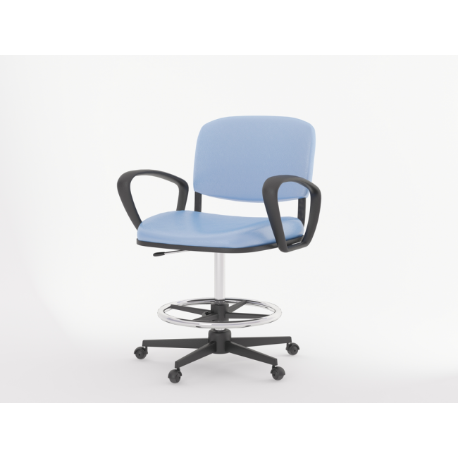 Стул предназначен для использования в медицинских лабораториях и медицинских и других учреждениях. Сиденье и спинка с полумягким наполнением и защитным покрытием из кожзаменителя медицинской серии.