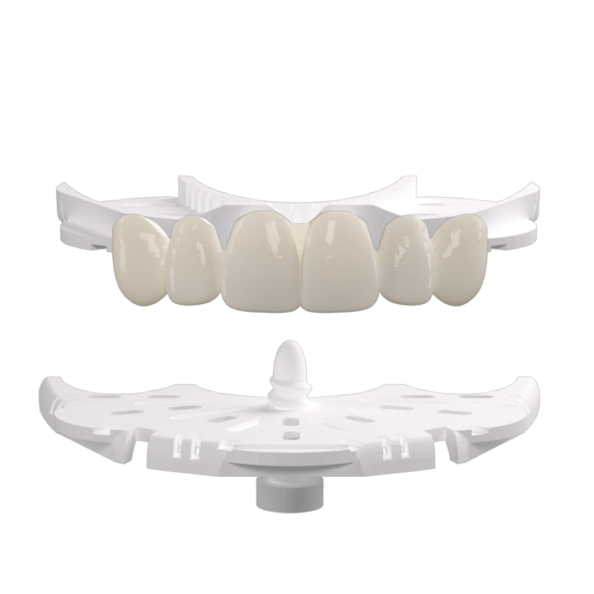 RAYeTray оснащён шестью передними зубами и винтовыми областями, изготовленными из рентгеноконтрастного материала, что позволяет точно регистрировать прикус и вертикальный размер и получить полную информацию для дальнейшего протезирования.