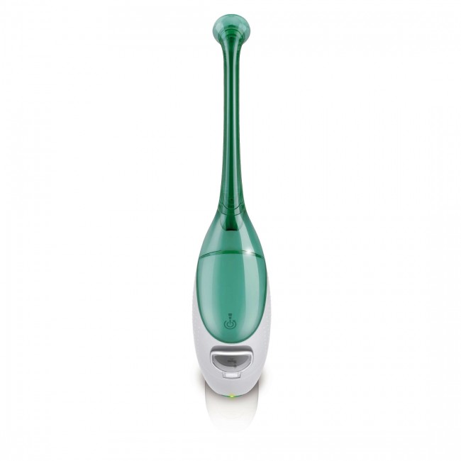 • Чистота всей полости рта всего за 30 секунд. С устройством для очистки межзубных промежутков, чистка всей полости рта займет всего 30 секунд. Просто нажмите на кнопку один раз для однократного распыления, затем переместите щетку и повторите действие. Для включения новой функции автораспыления нажмите на кнопку и удерживайте ее, перемещая направляющий наконечник от одного межзубного промежутка к другому. Автоматическое распыление будет происходить каждую секунду.