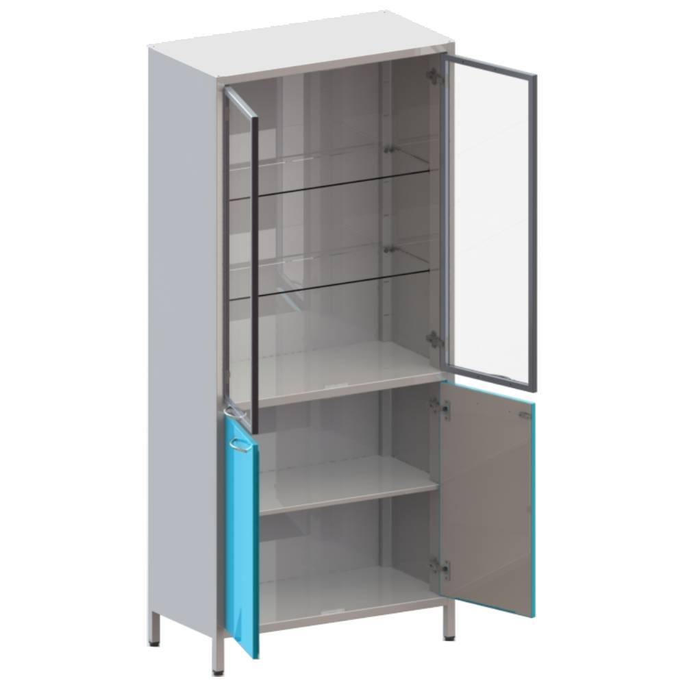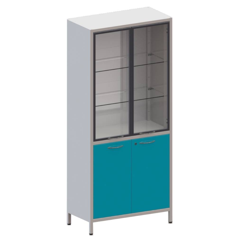 Шкаф медицинский ШМе-2см алюминиевый профиль, двухстворчатый двухсекционный металлический цельносварной