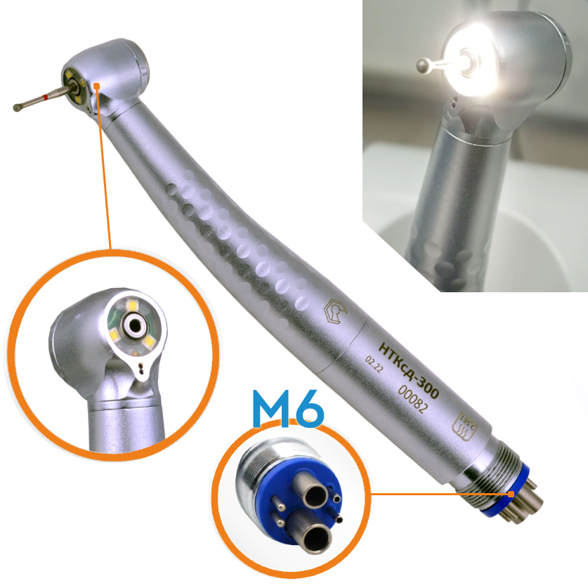 В наконечнике НТКсд-300 (М6 (6pin), с фиброоптикой) ООО «ВХ-Тайфун» (Россия, г. Серпухов) удалось объединить все новейшие достижения в конструкции стоматологических наконечников в одном инструменте: